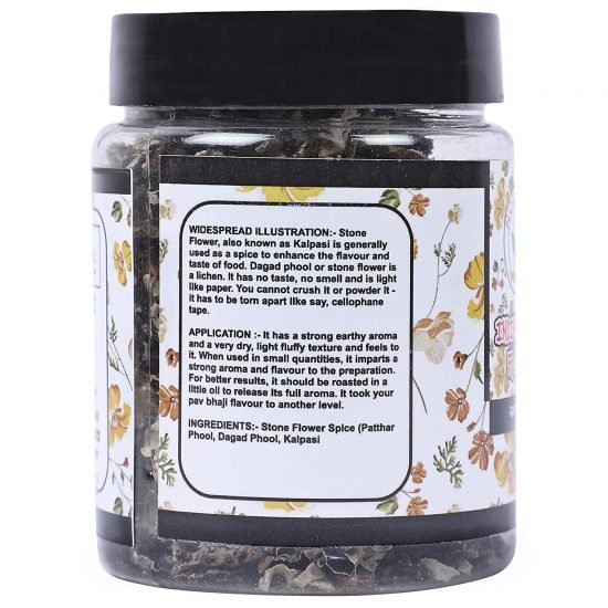 Stone Flower, also known as Kalpasi is generally used as a spice to enhance the flavour and taste of food. Dagad phool or stone flower is a lichen. It has no taste, no smell and is light like paper. You cannot crush it or powder it – it has to be torn apart like say, cellophane tape. It has a strong earthy aroma and a very dry, light fluffy texture and feels to it. When used in small quantities, it imparts a strong aroma and flavour to the preparation.